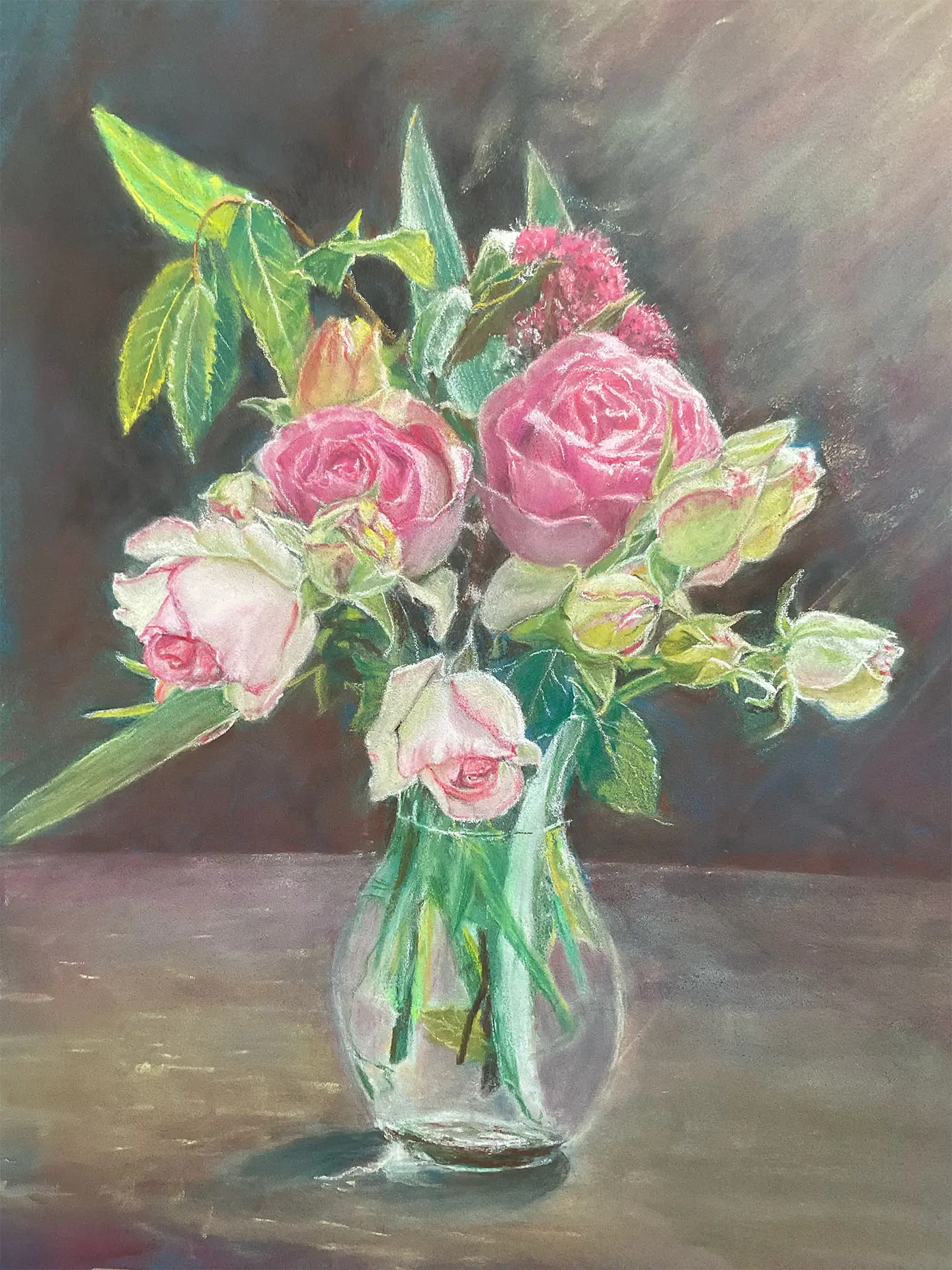 Juste pour un peu de  rèverie et parceque la vie est courte, j’ai repris mes vieux batons de pastels qui m’attendaient dans mon placard. Fleurs, portraits, études de toutes sortes sont arrivées.